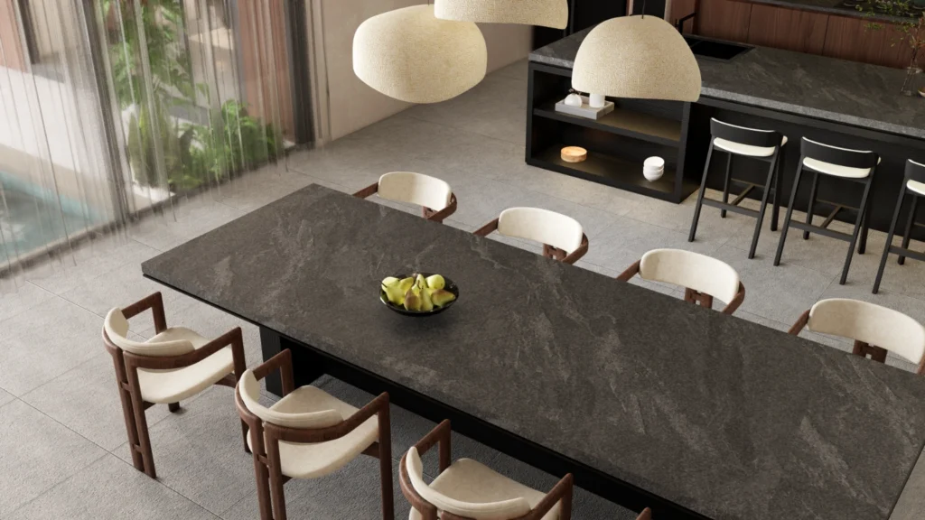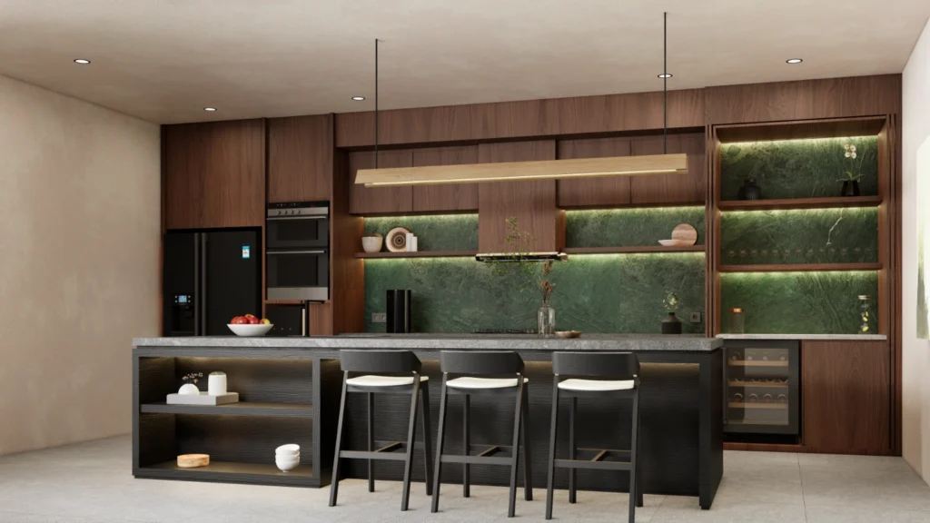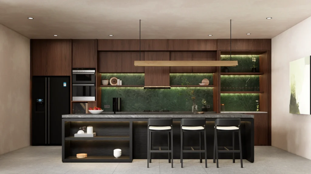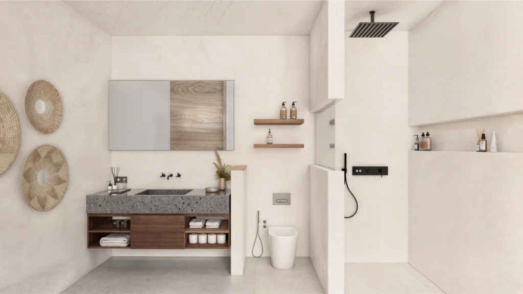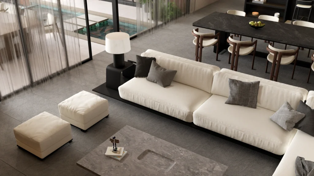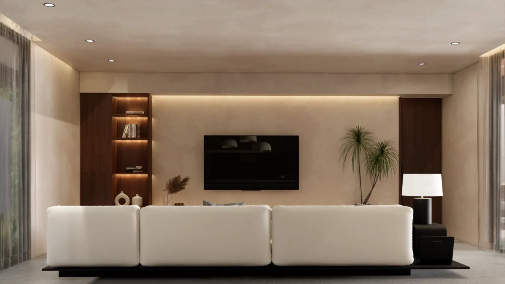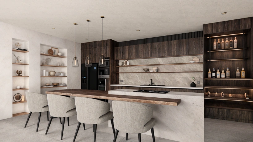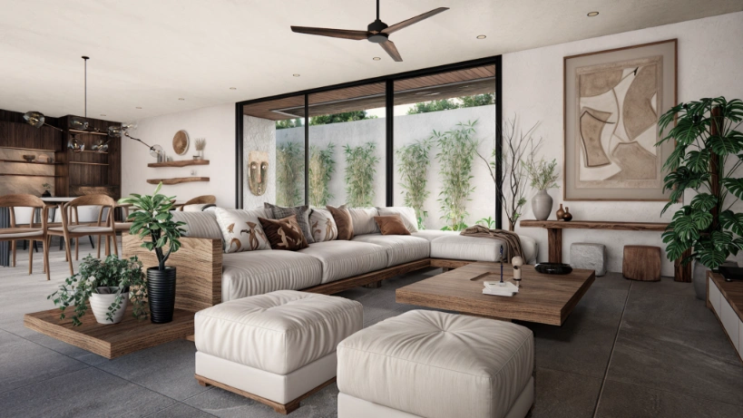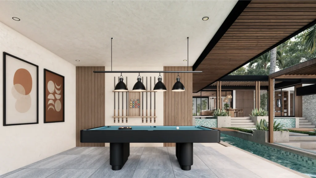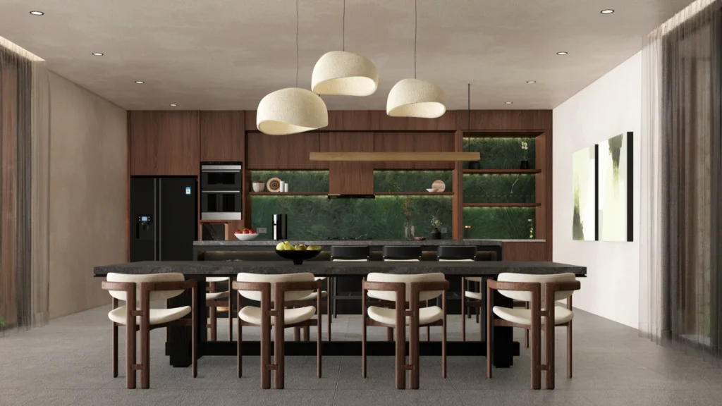 Thoughtful contrasts between pale woods, warm creams, and a whisper of smoky black give the villa dimension while keeping the atmosphere light and soothing. It’s a space that doesn’t shout, but whispers calm, warmth, and emotional clarity.