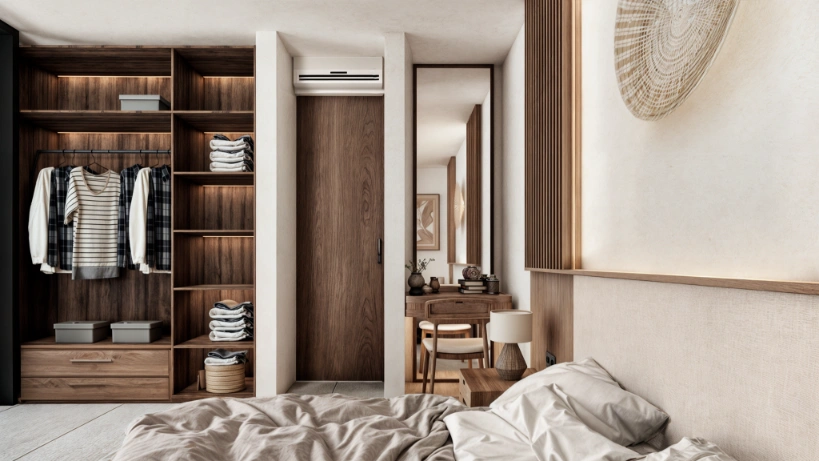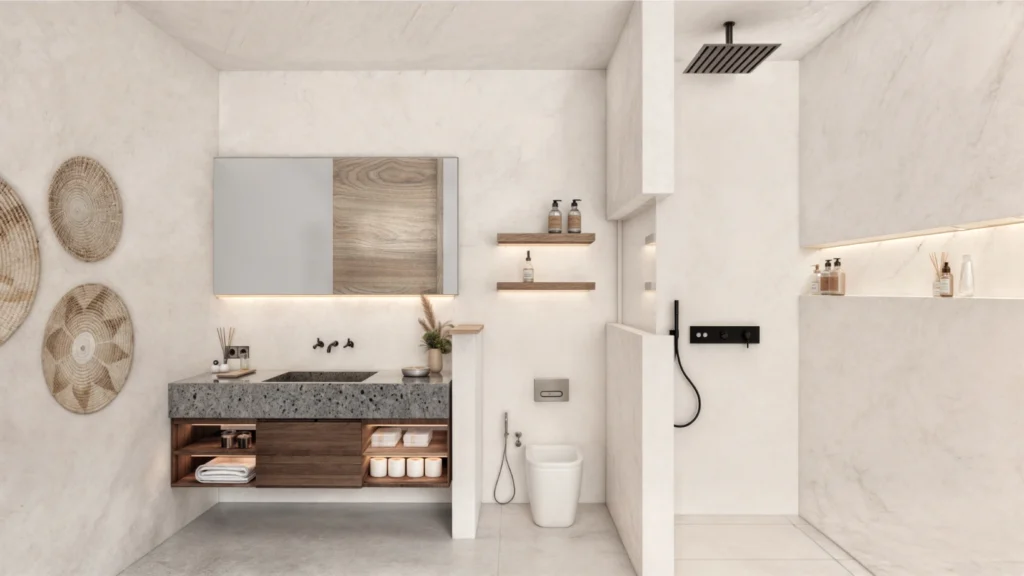 A delicate blend of soft coral, warm beige, and muted whites sets the tone in Unit 5, a villa that feels like a gentle sunrise. Earthy yet feminine, modern yet rooted, this space wraps you in understated charm and quiet elegance from the moment you enter.